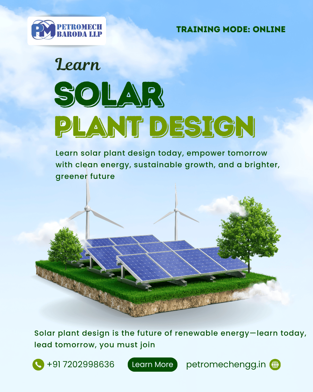 Join Petromech Institute—Vadodara’s trusted name in electrical design education. Learn Solar Plant Design through our online training program and become a part of India’s clean energy revolution. Whether you're a student, engineer, or entrepreneur, this course equips you with practical skills for tomorrow’s energy needs. • Training Mode: Online • Industry-Relevant Curriculum • Expert Guidance & Certification Petromech Institute is recognized as one of the best Electrical Design Institutes, offering specialized programs in solar, electrical plant, and industrial systems. Call: +91 7202998636 Learn More: petromechinstitute.com