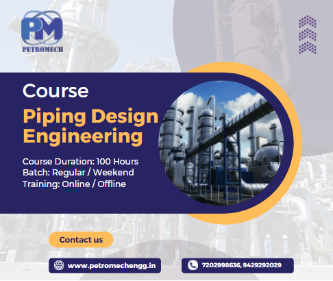 Piping Design Engineering Course @ Petromech Institute Course Duration: 90 to 100 Hours Batch: Regular and Weekend Training: Online and Offline |Piping Engineering| |Piping Layout| |Piping Materials| |Piping Modeling| |Piping Drafting|